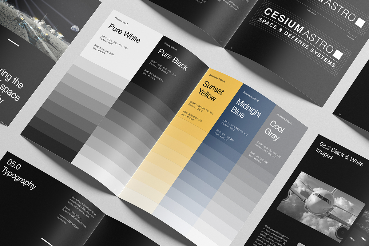 Contracted by CesiumAstro to design their brand guidelines, which were distributed to team leaders and external vendors—establishing a cohesive, powerful brand identity.